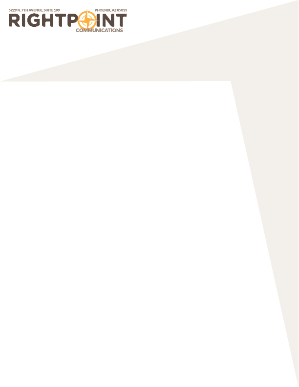 Branding and identity package for RightPoint Communications, a Phoenix, AZ-based PR firm.